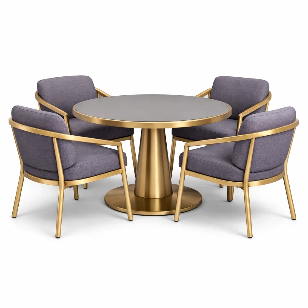 Esstisch set mit stühlen metallrahmen runder tisch mit stoffsesseln grau gold€135,21