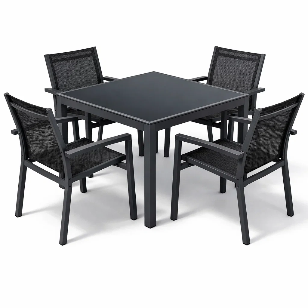 Esstisch set mit stühlen aluminium glas 5 teilig schwarz€102,30
