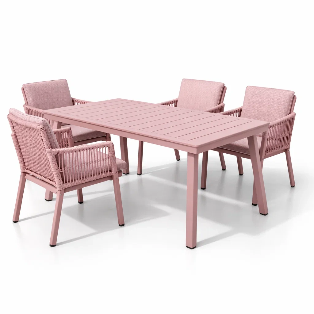 Esstisch set mit stühlen aluminium polyethylengeflecht stühle rosa€121,50