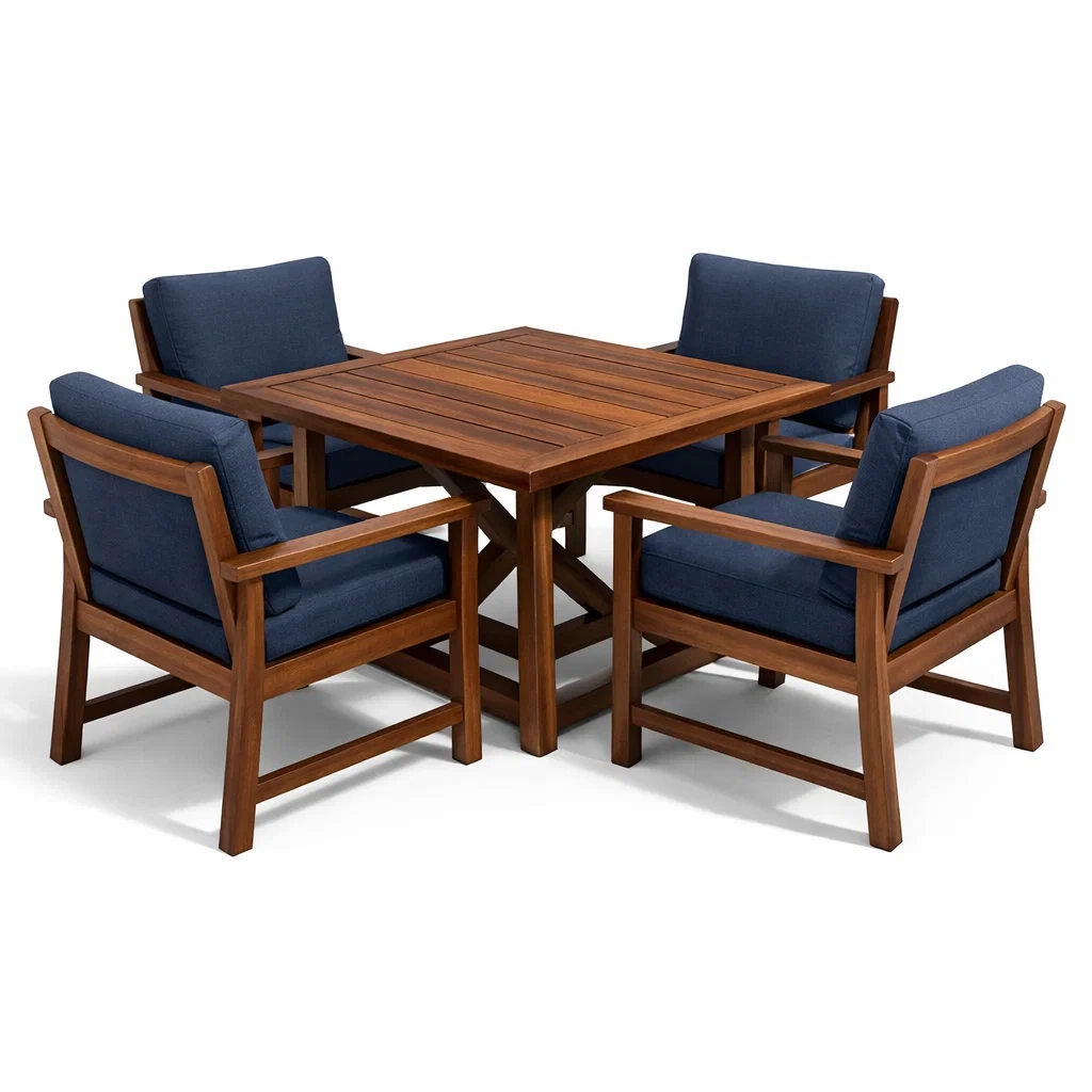 Esstisch set mit stühlen akazienholz quadratisch dunkelbraun mit 4 stühlen dunkelblau€135,11